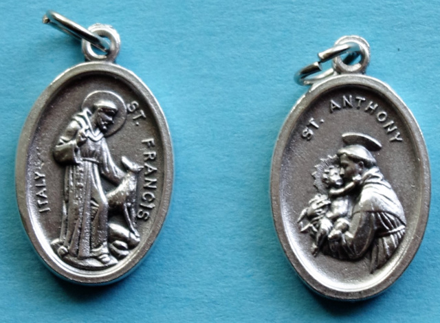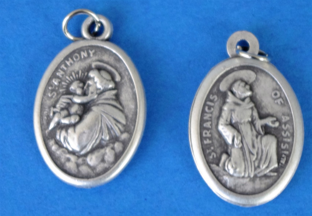 Medal is approximately 1 inch tall, with "Pray For Us” or St. Anthony on the back.